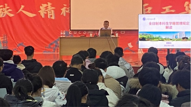 為加強學生對學籍管理政策的認識和理解,12月13日下午,材料科學與工程學院在鄠邑校區騰輝大學生活動中心舉辦全日制本科生學籍管理規定解讀報告會。報告會由教務處副處長馬加傳主講,學院2023級全體本科生參加,輔導員陳慶龍主持報告會。