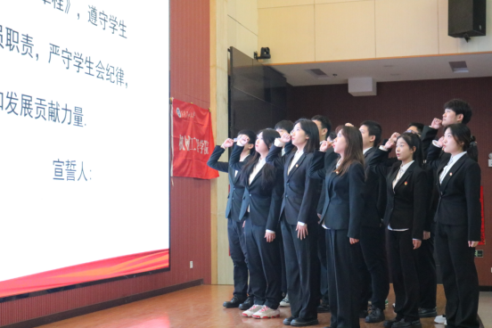 院團委書記王璟老師對本次大會致開幕詞,并向校團委及各兄弟院(系)一直以來對學院團學工作的支持和幫助表示衷心感謝,希望各位團學干部,一要團學工作要緊緊圍繞學校中心工作來開展,并在服務學校大局中更好地發揮作用,二要不斷提升青年團員的思想道德素質,努力打造一支使同學滿意,老師認可的高素質學生干部隊伍,努力開創學院團學工作的新局面,三要進一步加強自身建設,努力提升團學干部的工作能力。