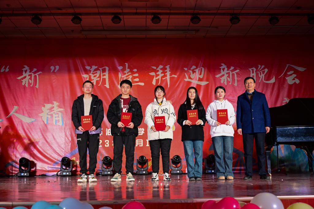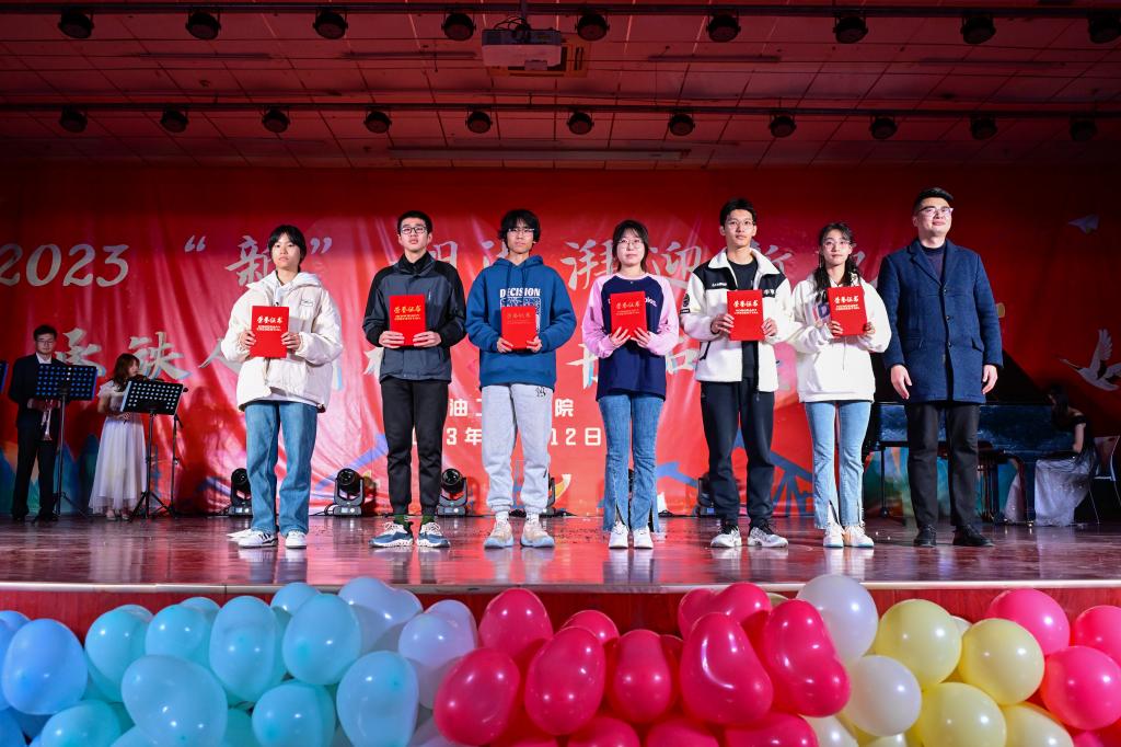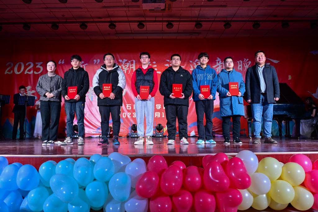 為了在全院學生中樹立典范,彰顯榜樣的力量,營造“追求卓越”“比學趕幫超”的良好氛圍,進一步激勵廣大同學奮發成才,本次晚會還特別設置了表彰頒獎環節,對2022-2023學年獲得國家獎學金、中國石油獎學金的同學;在學科競賽獲國家級、省級獎項的團隊;在社會實踐活動中獲省級、校級獎勵的優秀代表;第十五屆大學生陽光體育節中獲獎代表;2023年軍訓優秀學員代表等50余名獲獎學生代表進行了隆重表彰,與會領導嘉賓為獲獎學生頒獎。