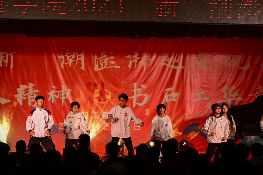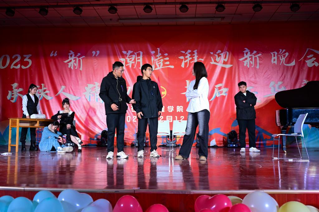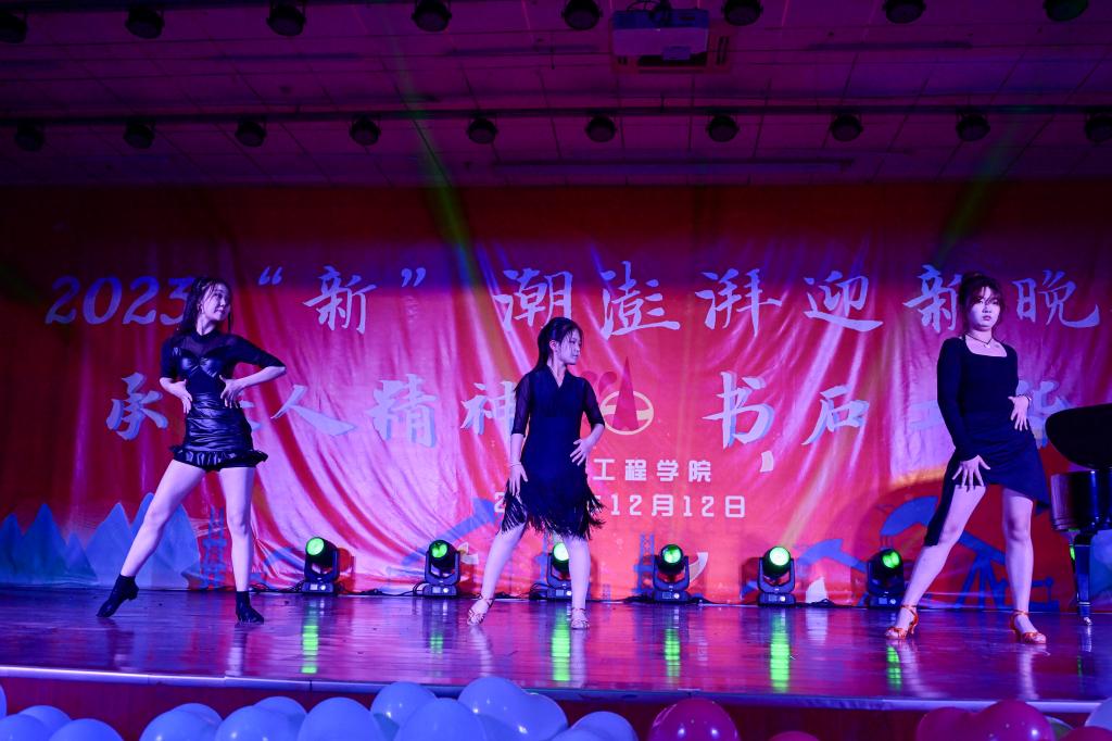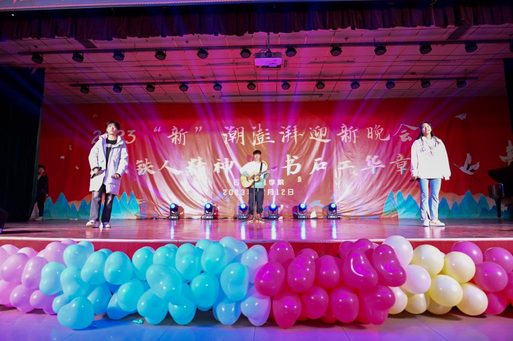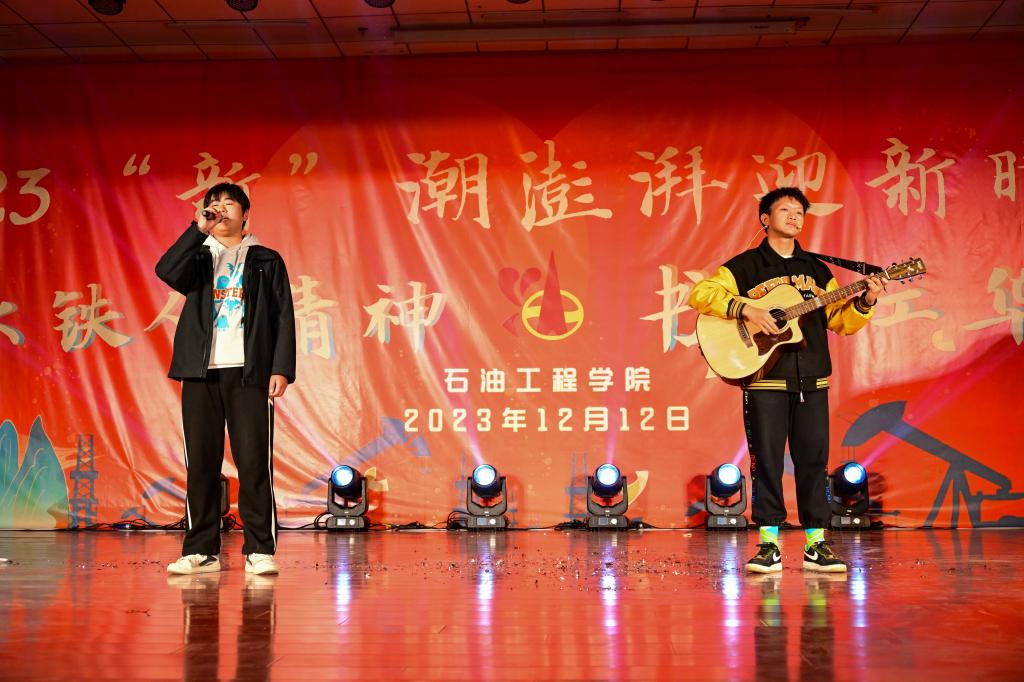 晚會以“承鐵人精神,書石工華章”為主題,分“頌青春夢想,譜時代新聲”“承鐵人意志,筑未來之夢”兩個篇章,共有14個精彩節目,還設有幸運抽獎及有獎問答環節。在第一篇章“頌青春夢想,譜時代新聲”中,節目形式多樣,內容豐富。有古聲古色的民樂演奏《蘭亭序》、銀色世界的獨舞《冬日》、異域風情的歌舞《有那么一個地方》;也有情思輾轉的吉他彈唱《老男孩》、詼諧幽默的舞臺劇《誰殺死了周日》、輕松愉快的特色節目《小人舞》引起了觀眾們陣陣掌聲。在第二篇章“承鐵人意志,筑未來之夢”中,有勇敢追夢的《玫瑰少年》、激情似火的《魅力拉丁》、奮發圖強、改變人生的《重生》、憧憬未來、渴望成長的《我相信 青春贊歌》以及團結友愛、協力前行的《愛的華爾茲》,這些節目讓觀眾們感受到了石工青年的堅韌不拔和自強不息精神。在幸運抽獎環節中,許多觀眾都獲得了精美的禮品,問答環節針對我校的校史校情、學科專業知識等對觀眾進行了考驗,同時也借此機會讓同學們更加深入地了解了石油行業相關企業的情況。最后,全體演職人員合唱的《奔跑》,將晚會推向高潮,2023“新”潮澎湃迎新晚會在激揚的歌聲中落下帷幕。