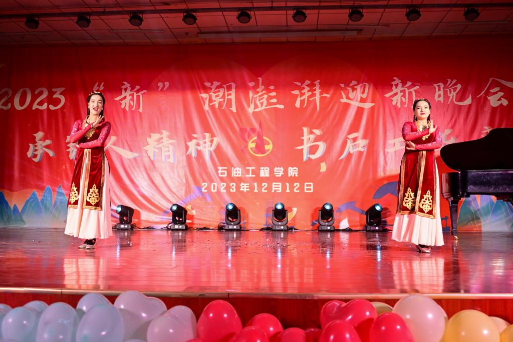 12月12日晚,石油工程學院2023“新”潮澎湃迎新晚會在騰輝大學生活動中心如期舉行。我院黨委書記馬勇、學生工作部(處)副部(處)長樊曉旭、院黨委副書記張建高、安東集團中國大區西北業務部人力行政經理閆遙、機關黨委綜合科朱戰威、校團委副書記孫浩哲、大學生心理成長指導中心辦公室主任焦文潔、院學生工作辦公室主任黃景鵬、科研辦公室任繼超老師及各年級輔導員老師、兄弟院系團委學生會學生代表參加本次晚會。
