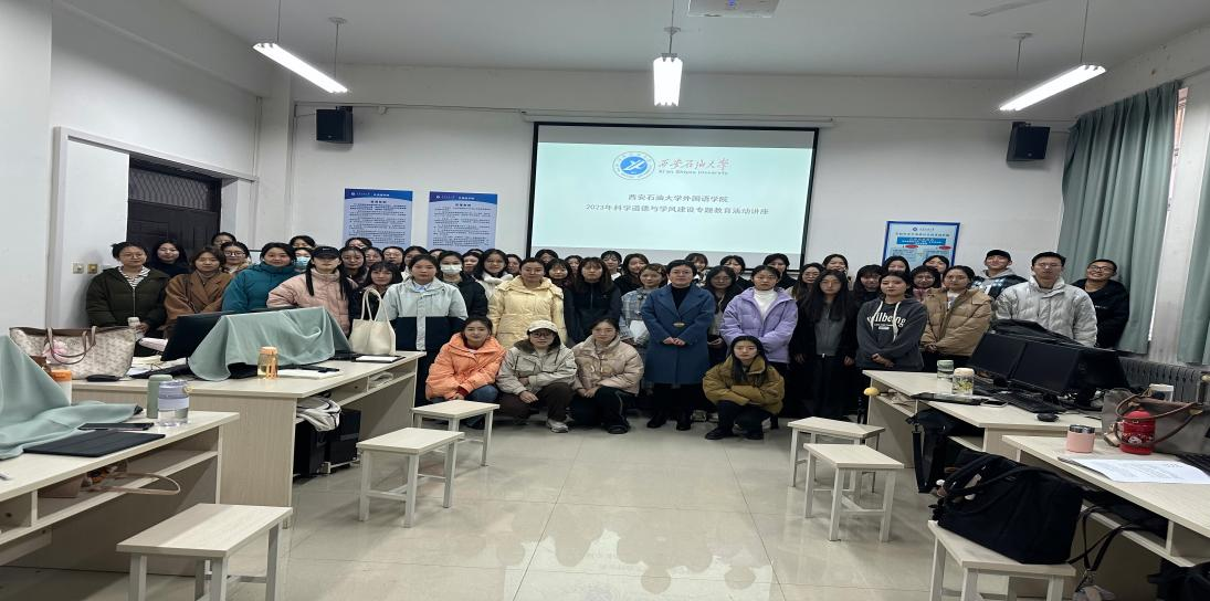 為進一步推進科學道德與學風建設工作,外國語學院從2023年12月1日起,分別在鄠邑校區和雁塔校區開展了科學道德與學風建設專題教育系列活動。此次活動以“科學道德與學風建設”為主題,涵蓋了科學道德、學術規范、學風建設等多個方面。通過講座、研討、實踐等多種形式,深入學習和探討科學道德與學風建設的相關內容,增強了學生們對科學道德和學風建設的認識和理解,翻譯碩士近200名同學參加了此項專題教育活動。