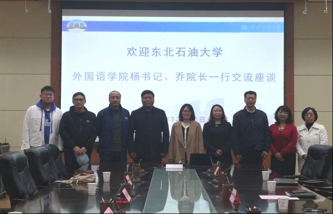 楊國鋒對我院的熱情接待表示誠摯感謝,介紹了東北石油大學黨建及工會有關工作,希望雙方以此次交流為契機,在大學英語課程設置、分級考試模式的挑戰困境與解決方案、師資隊伍建設、人才培養、科研團隊建設和黨建等方面加強合作。