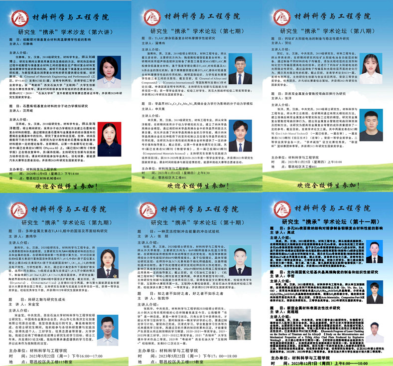 12月7日上午,材料科學與工程學院在鄠邑校區B103教室舉辦十一屆研究生“攜承”學術論壇,2023級全體研究生參加了本次論壇。