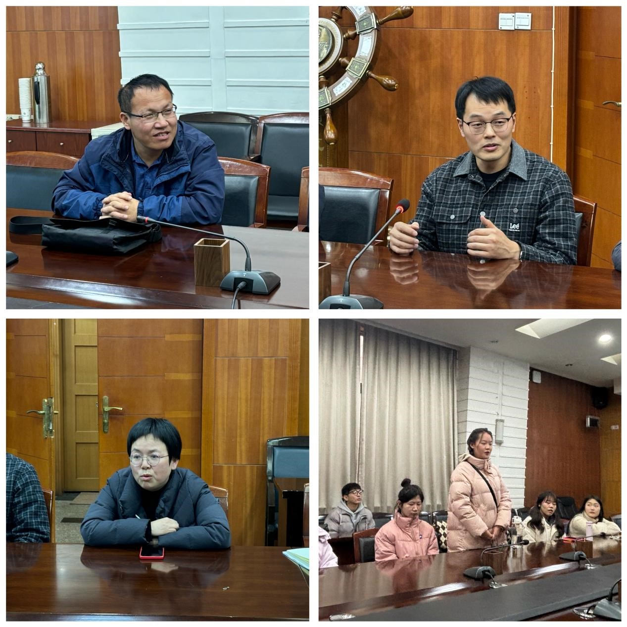參會研究生代表逐一匯報了研究生階段的收獲和現階段面臨的困惑,表達了能夠適應研究生階段學習生活,對未來職業發展充滿信心,并對學院教育教學、科研引導、就業服務、工作生活提出了寶貴建議。