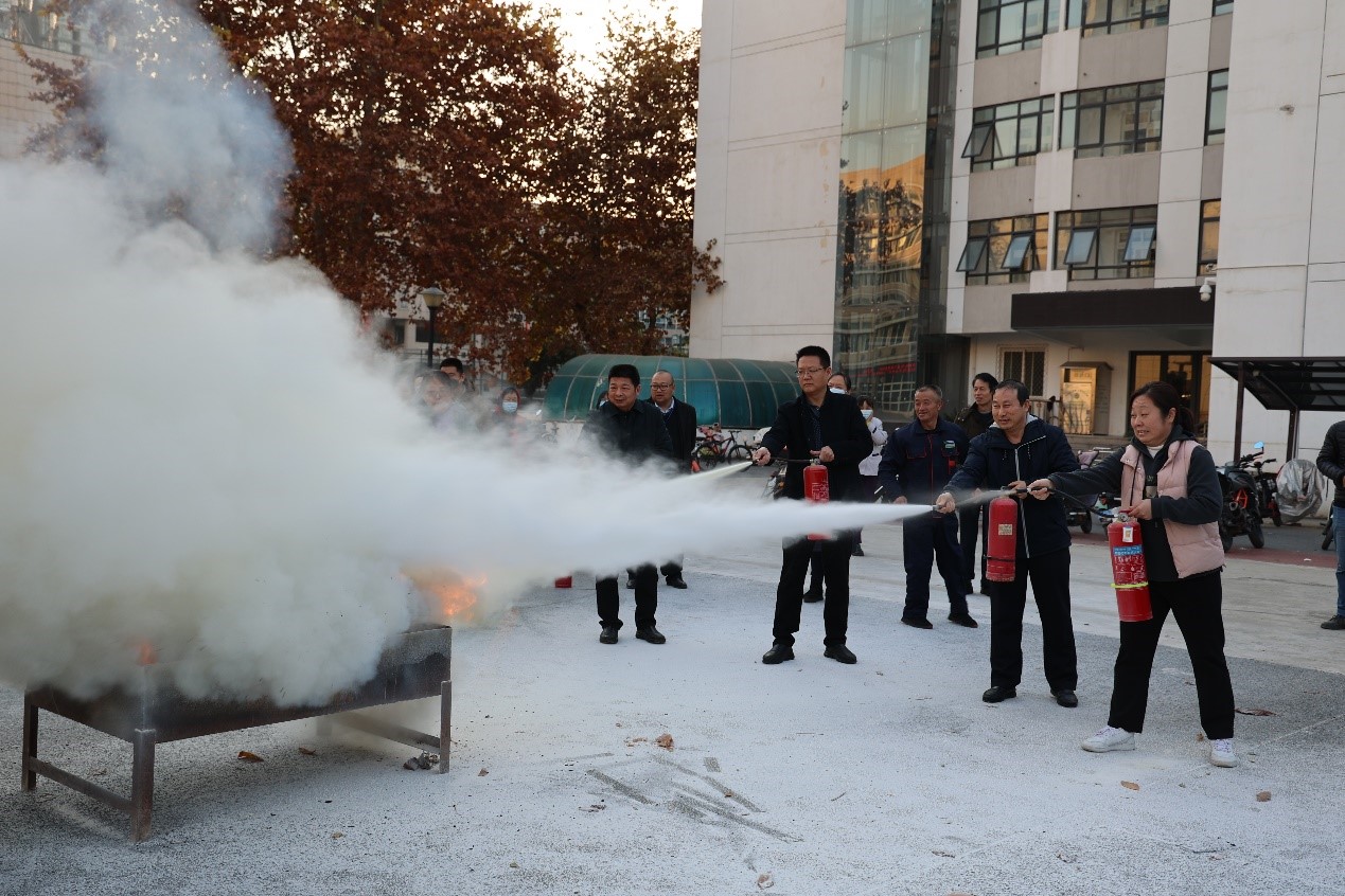 講座后,在室外空曠區域的“火情”模擬點,董湃老師講解了滅火器使用方法和滅火注意事項,并組織參訓員工進行了實操演練。