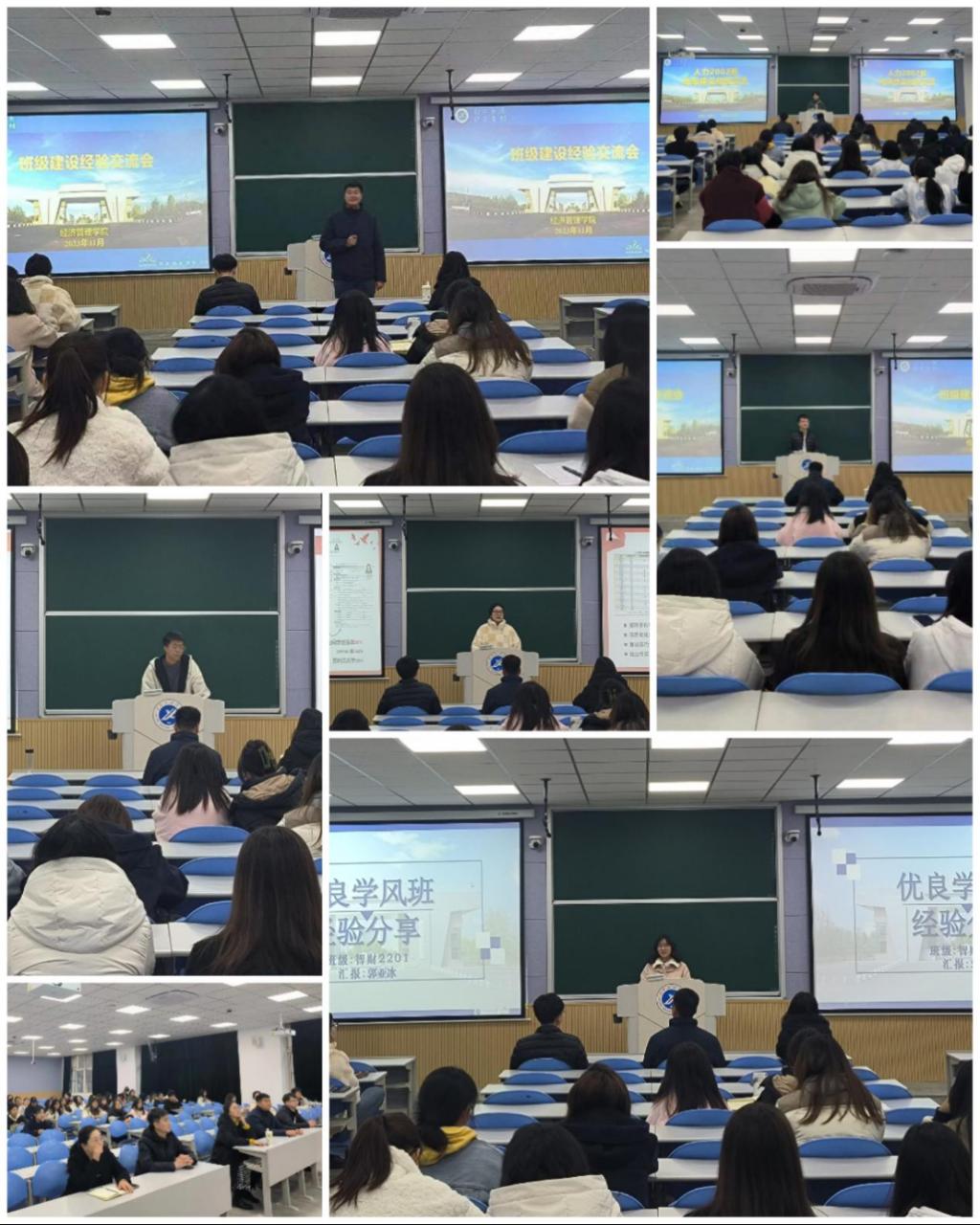 11月15日,經濟管理學院在博覽樓108智慧大講堂組織開展班級建設經驗交流會。本次分享會由鐵人班集體、優良學風班候選班級學生代表作經驗交流,學院學生工作辦公室主任李博文,輔導員劉清、張碩、王業林,2022級、2023級各班班長團支書參會,分享會由2020級輔導員史陽主持。