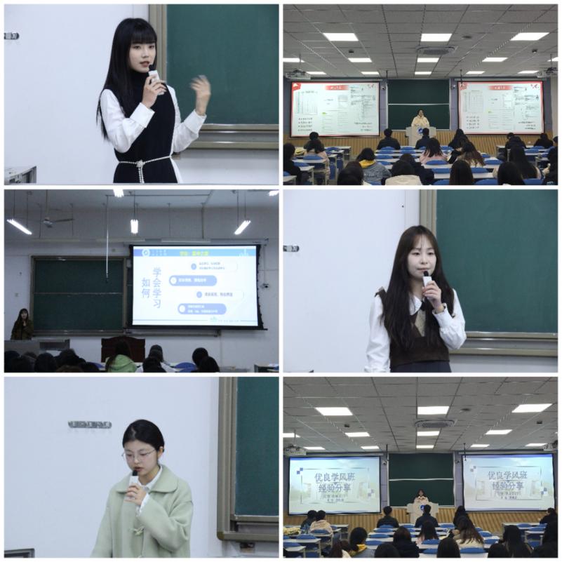 一是組建隊伍聚合力。經濟管理學院著力打造“1+N”支先鋒隊伍,即1支優秀班集體隊伍和“推免學生”、“國獎獲得者”、“優秀學習標兵”等N支先進個人隊伍,不斷強化隊伍建設,打磨先鋒事跡材料,總結優秀集體、個人的先進經驗,形成可復制的經驗,不斷樹立典型,強化榜樣引領作用。11月1日—2日在博覽樓教室舉辦了“經驗共分享,交流促成長”國家獎學金、中石油獎學金獲得者經驗交流會。國家獎學金獲得者董亦潔、鄭棋中,中石油獎學金獲得者高穎芝、晏瑞園、常笑笑結合個人學習經驗,從專業課程學習、科學研究、學科競賽、實踐實習等方面為低年級同學答疑解惑。11月15日,在博思樓321教室舉辦推免學生經驗交流分享會,2020級各專業推免生受邀分享經驗,2021級、2022級學生代表200余人參加了交流分享會。推免同學結合自身推免經歷,從保研政策、時間安排、目標規劃、自我定位、專業選擇和研究生支教團選拔條件等進行了介紹,針對同學們普遍關心的如何平衡學業與工作、實踐、科研和競賽等方面的問題與參會同學進行了深入的交流分享。11月15日,在博覽樓108智慧大講堂開展班級建設經驗交流會,優秀班集體代表人力2001班、人力2002班、商務2002班、智財2201班班干部代表分別就班級思想引領、文化建設、學風建設等方面進行經驗分享,充分發揮朋輩引領和榜樣示范作用。二是專題培訓提能力。大學英語四、六級考試是對大學生的英語能力進行客觀、準確測量的有效方式,在大學生專業學習、考研就業、出國留學等方面起到重要作用。學院將四六級通過率作為強學風的重要抓手。自11月1日開始,每周三下午組織2022級、2023級學生開展英語四六級培訓,邀請外國語學院武絨老師專題講授四六級單詞積累、閱讀理解、備考技巧等專題課程,不斷提高學生英語聽說讀寫能力。11月22日,在博思樓205舉辦考研英語專題講座,為2024屆考研學生在英語作文的寫作、語料的準備等方面進行專題輔導。
