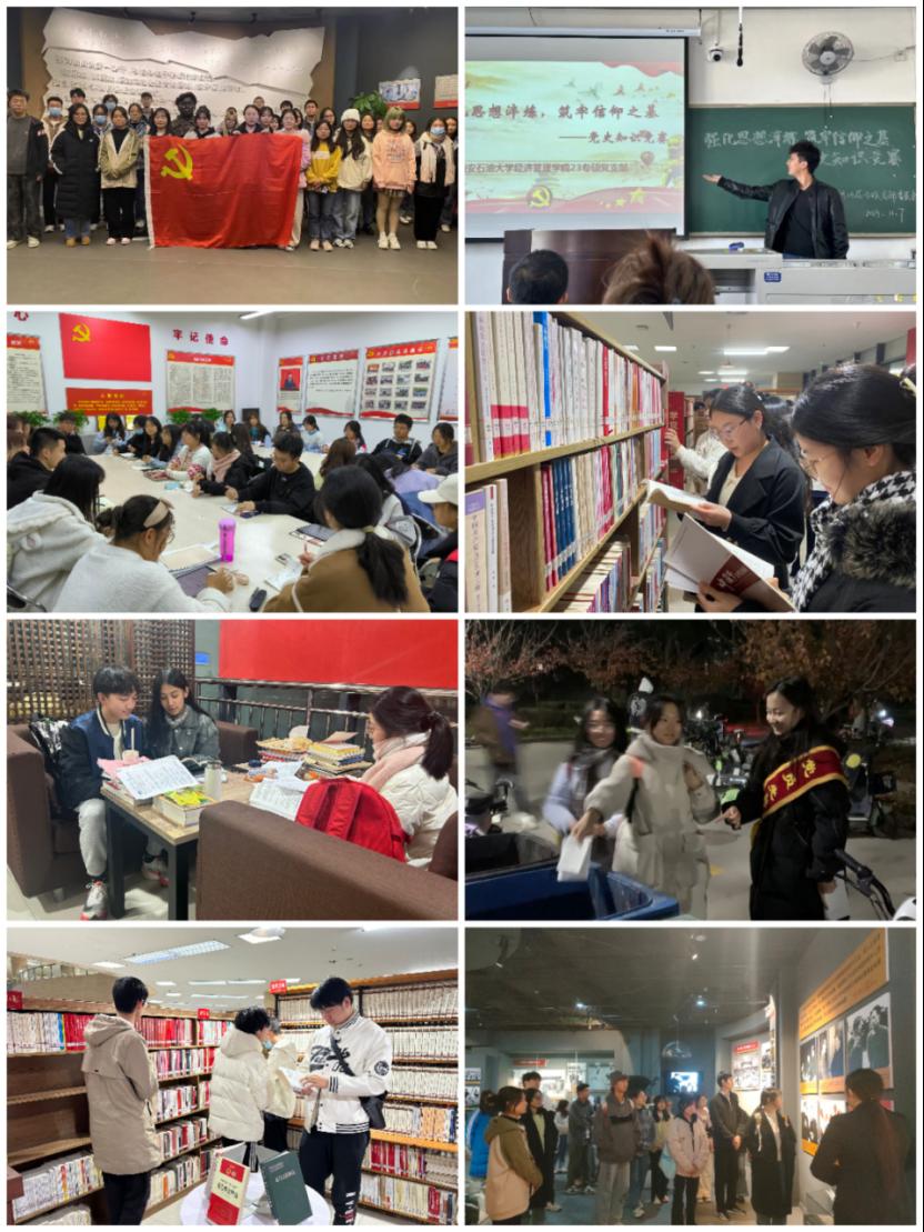 一是樹立形象當先鋒。11月8日—12日,學院開展了黨員一對一幫扶活動,學生黨員干部積極幫助同學加強思想政治學習,主動宣傳優秀共產黨員的模范事跡,與幫扶學生談心談話,及時了解學生情況,在學習、工作和生活上有針對性地幫助和引導。二是學習思想明事理。11月17日,學院邀請學校鐵人研究中心首席專家郭崗彥老師,舉辦“感悟鐵人魅力,汲取成長力量”鐵人精神教育及課程思政專題講座。會議采用微信直播平臺,學院師生2000余人參加活動。講座的開展幫助學生對鐵人精神的內涵有了更深層次的認識和感悟,激發了學生愛國、愛黨的熱情和奮發有為的斗志,立志傳承紅色基因,爭做時代新人。11月9日—10日,學院組織各學生黨支部召開主題為“品讀紅色經典,傳承紅色精神”的紅色經典書目閱讀分享會活動,邀請各支部黨員代表分享日常生活中閱讀紅色經典書目的感想感悟,以充分調動支部成員閱讀紅色經典書目的積極性。11月8日—15日學院各學生黨支部開展“從鐵人精神中汲取青春奮進力量”主題黨日活動,組織各支部成員前往鐵人館參觀學習,重溫黨史憶初心,汲取力量共奮進。三是亮明身份展風采。學院組織學生黨員同志深入教學樓、圖書館了解學生學習情況,引導學生前排就坐、認真聽講,養成良好的學習習慣等;深入學生公寓,對宿舍內務進行檢查,針對不同宿舍的情況分別幫助內務整理;深入食堂、餐廳提醒同學們切勿浪費糧食,積極宣傳“一粥一飯,當思來之不易”的勤儉節約思想。