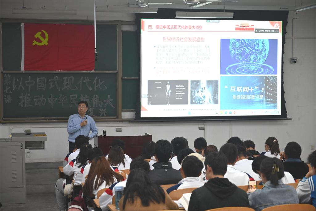 11月21日晚,電子工程學院第24期入黨積極分子培訓班第七講在鄠邑校區博思樓221教室順利進行。本次黨課的主題為《以中國式現代化推動中華民族偉大復興》,由西安石油大學黨委學生工作部(處)部(處)長王亮老師擔任主講,我院202名入黨積極分子參加了此次黨課。
