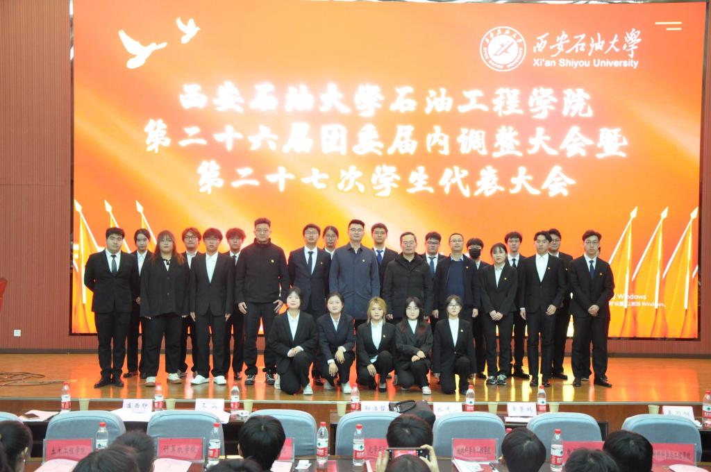 11月22日晚,石油工程學院第二十六屆團委屆內調整大會暨第二十七次學生代表大會在鄠邑校區弘石報告廳順利召開。院黨委副書記張建高、校團委副書記孫浩哲出席會議,院團委書記黃景鵬,團學指導老師王淵、2022級輔導員崔西印、校學生會執行主席秦雨桐、兄弟院(系)團委、學生會負責人及學院學生代表參加會議。