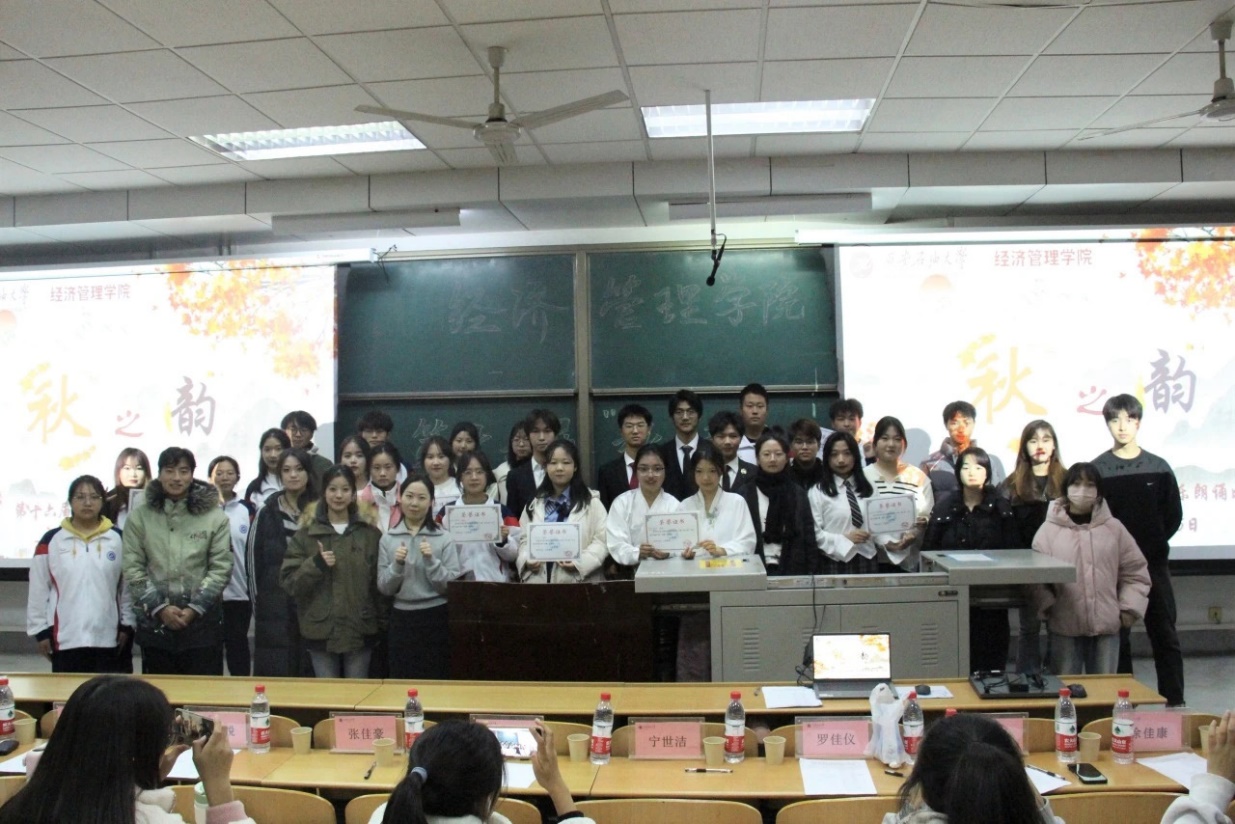 為進一步加強校園美育環境建設,提高學生的審美和人文素養,促進學生全面發展,經濟管理學院于11月16日在鄠邑校區博覽樓139教室舉辦第十六屆“秋之韻”詩歌配樂朗誦比賽,學院團學指導老師任仰,2022級輔導員老師王業林及學院團學干部代表出席比賽并擔任評委。比賽由黃俊杰、楊思穎同學主持。
