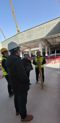 在未來之瞳·瞳系列建筑項目現場,大家首先聽取了項目基本情況、新型建筑工業化建造亮點、科技創新成果等方面的介紹。隨后,實地參觀了西安大劇院項目工地現場,重點對裝配式構件、鋼結構智能加工、藝術木紋清水混凝土工藝和全生命周期BIM應用進行了觀摩學習,并與項目現場負責人就項目“建筑師+監理+全過程咨詢”的大全咨管理模式進行了深入交流。