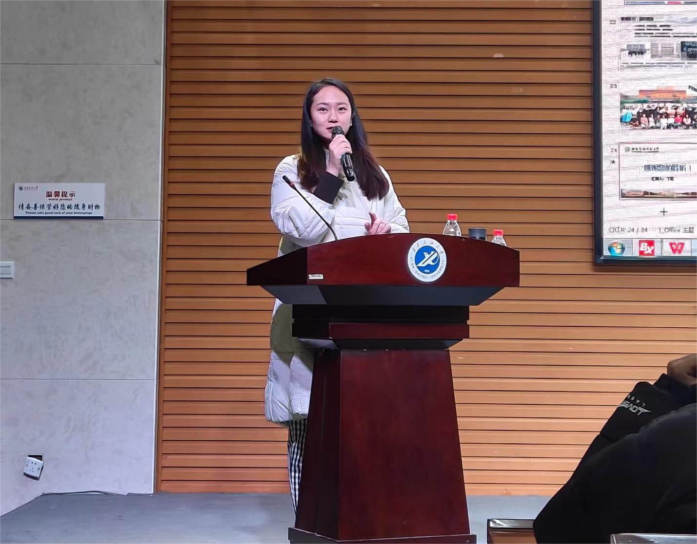 會議中,丁蕊同學深情表達了對母校深厚的感情,緊接著以“胸中有丘壑,立馬鎮山河”為主題,結合自身經歷,從專業學習、能力培養、升學規劃、職業發展等多個方面向在場同學分享了經驗與心得。她鼓勵同學們在大學期間一定要積極參加學科競賽,要努力提升自我,為后續保研、考研以及就業做好準備。她表示,科研路上,要平穩心態、學會堅持、敢于嘗試,失敗后要善于反思總結、積累經驗,積極去面對問題。同時,她展示了在研究生期間的一些學習成果,鼓勵大家要結合自身實際盡早做出學業規劃,以便選擇好前進的方向。最后,她就現場同學們提出的關于如何規劃時間、如何參與專業技能競賽、考研考博復習等諸多問題進行了逐一解答。