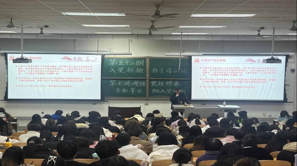為進一步提高入黨積極分子的黨性修養,端正入黨動機,增強政治覺悟,11月15日,經濟管理學院第五十二期入黨積極分子培訓班第七講于鄠邑校區博覽樓239教室舉行。本次黨課由研究生工作部部長李強主講,第五十二期全體入黨積極分子參加。