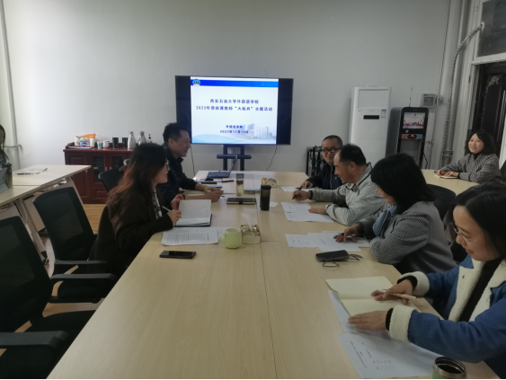 為認真貫徹落實習近平總書記關于學校思想政治理論課的重要論述,按照《中共陜西省委辦公廳關于印發〈全國“大思政課”綜合改革試驗區陜西省實施方案〉的通知》(陜辦字〔2023〕54號)精神,加強高素質、創新型教師隊伍建設,深化課程育人質量改革,外國語學院于11月14日下午在華油能源樓727舉辦了課程思政“大練兵”講課比賽,學院黨委書記田虹霞、副院長陳武、大學外語教學一部主任李雪梅、大學外語教學二部主任彭健、英語系主任鐘澤波、翻譯系副主任秦艷霞參加了本次主題活動。本次比賽由陳武副院長主持。