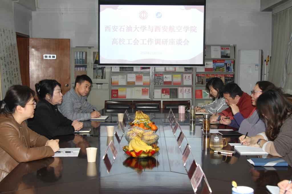 11月15日上午,西安航空學院工會常務副主席陳冬梅一行3人來我校調研高校工會工作,座談會在雁塔校區工會樓310會議室召開。校工會主席袁玎主持座談會,工會全體人員參加了座談。