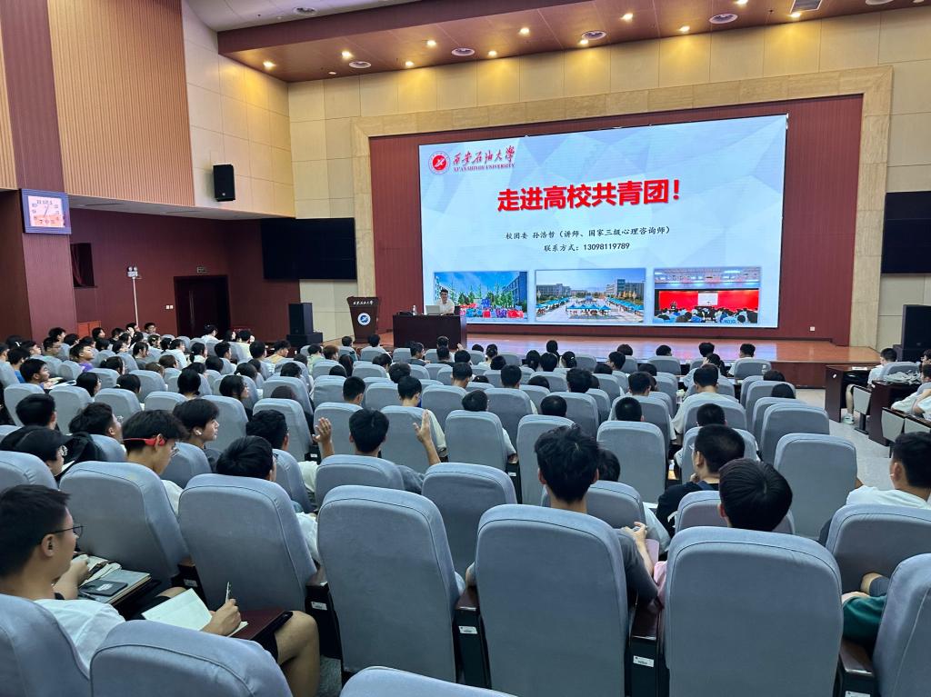 為深入貫徹落實共青團中央關于加強團的基層組織建設工作精神,使新生更好的了解共青團的主要知識,增強入團、入黨意識,9月14日晚,“學院新生入學教育之走進高校共青團”主題教育活動在鄠邑校區弘石學術報告廳舉行,活動邀請我校校團委副書記孫浩哲擔任主講。孫浩哲首先從什么是共青團、共青團的光榮歷史、團旗、團徽、團歌等幾個方面為全體新生詳細介紹了團的基本知識,并從組織建設、校園文化、第二課堂、社會實踐、學生社團以及學生會組織等方面將我校共青團工作進行詳細解讀。隨后,孫浩哲還對班級團支部建設、智慧團建、團關系轉接、青年大學習、西安石油大學第二課堂學分管理辦法等重點工作進行了交流研討。同時,他通過介紹團總支、班委的職能,強調了班團一體化建設的必要性,并希望2023級新生能更加積極的提升自己的思想建設,在中國共青團的引領下努力向中國共產黨靠攏,為共產主義事業努力奮斗,將個人成長與祖國發展緊緊相連,在奮斗中綻放出最美麗的青春。