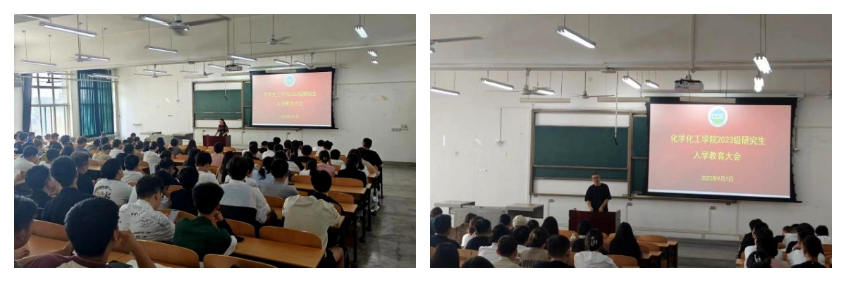 9月7日下午14:00,化學化工學院2023級研究生入學教育大會在鄠邑校區B321教室召開?;瘜W化工學院科研辦主任蔣勝老師、現代分析檢測中心主任賈新剛副教授、綜合辦公室馮旭亮老師及全體2023級研究生參會。會議由2023級研究生輔導員王蓉主持。