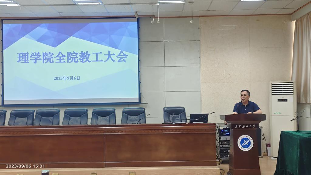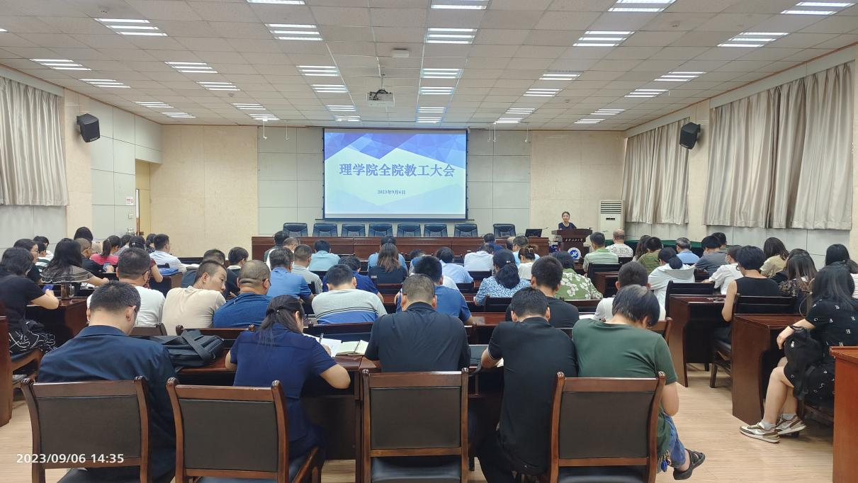 2023年9月6日下午,理學院在雁塔校區西階第三會議室召開全院教職工大會。學院領導班子和教師120余人參加,黨委書記廖敏主持。
