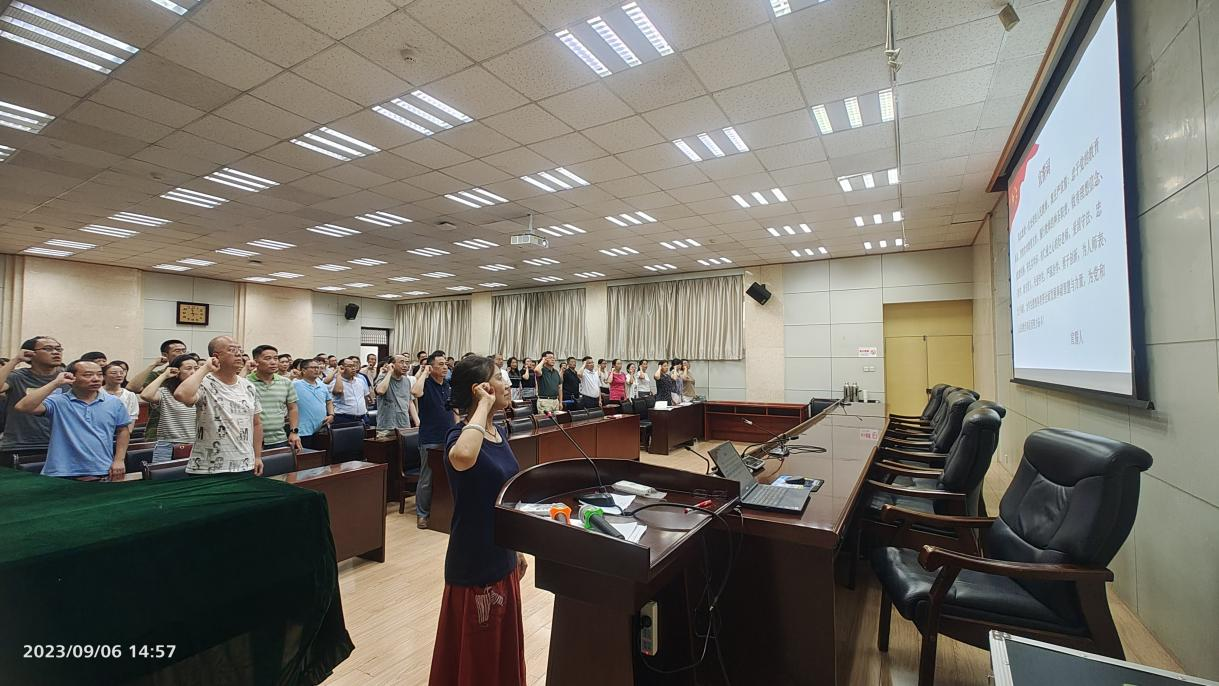 會上,學院黨委書記廖敏帶領全體教職工學習了習近平總書記在中共中央政治局第五次集體學習時的重要講話精神、習近平總書記給中國石油大學(北京)中亞留學生的重要回信精神,重點解讀了教育部黨組書記、部長懷進鵬在《人民日報》上發表的署名文章《以教育之強夯實國家富強之基》當中主要內容和核心要義,重溫了《新時代高校教師職業行為十項準則》,并結合教育部公開曝光的第十三批7起違反教師職業行為十項準則典型案例和陜西省教育廳辦公室通報的8起違反教師職業行為十項準則典型問題,對全體教師進行了師德師風專題教育。同時,在第39個教師節來臨之際,廖敏書記帶領全院教師面向國旗,重溫教師誓詞,進行了莊嚴宣誓。