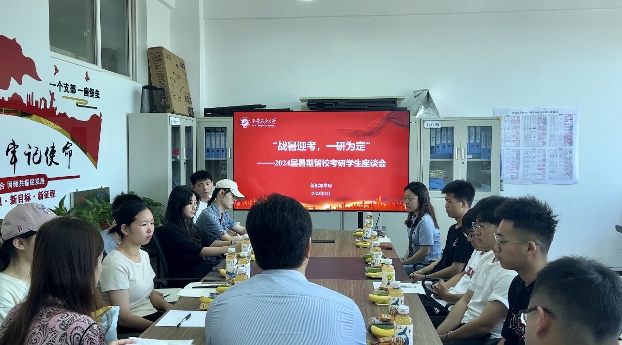 為進一步加強學風建設,夯實“三全育人”工作理念,構建“黨建+學風”協同育人模式,助力2024屆畢業生提高暑期考研復習成效,切實激發起考研學子的內在動力,營造出良好的學習氛圍,新能源學院暑期相繼開展了“戰暑迎考,一研為定”主題系列活動。