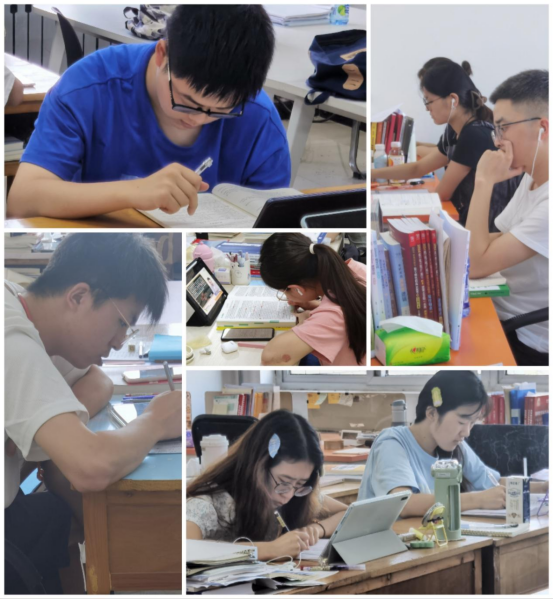 驕陽似火的盛夏,崇文樓403考研自習室涼爽宜人,同學們熱情高漲,干勁十足。老師們走進考研自習室,勉勵同學們一是要拿出勤學肯干的“鉆勁”,考研復習是一個需要積累的過程,不可能一蹴而就,學如弓弩方可才如箭鏃,當前正處于學習的黃金時期,應該把學習作為一種責任、一種精神、一種生活方式,讓勤奮學習成為青春遠航的動力,讓增長本領成為青春搏擊的能量。二是要拿出開鎖解結的“巧勁”,考研復習是一場攻堅戰,“磨刀不誤砍柴工”,應該堅持科學規劃、勞逸結合,合理規劃好學習與休息時間,注重健康飲食,進行適當的體育鍛煉,關注自我心理狀況,適時地調整狀態,養成樂觀、理性、平和的心態。三是要拿出久久為功的韌勁,考研復習是一場持久戰,需要長期付出辛勞,不能心浮氣躁、淺嘗輒止,而應循序漸進、水滴石穿,更要慎終如始,“行百里者半九十”,只有以堅強的意志做后盾,百折不撓、越戰越勇,才能在最后階段擁有戰勝困難的信心和艱苦奮斗的實力,從而取得最終勝利。