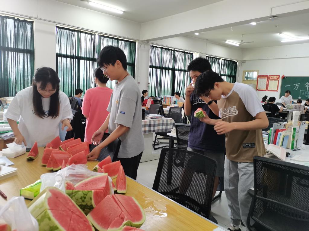 在鄠邑校區,廖書記一行看望慰問了備考研究生考試的百十余名2020級本科學生,并為同學們送去西瓜解暑。廖書記先是叮囑大家,留校期間提高安全意識,遵守校規校紀,在學習生活中遇到困難及時與輔導員聯系。然后,充分肯定了考研學生的學習精神和決心,表揚了他們不畏酷暑、堅持學習的堅毅品質,最后,表達了學院對同學們的美好祝愿,預祝各位考研順利,旗開得勝,馬到成功。折延宏副院長和兩位輔導員還深入學生詢問了大家在校遇到的學習和生活中的困難,希望同學們勞逸結合,增強安全意識,注意寢室、飲食、交通等安全。