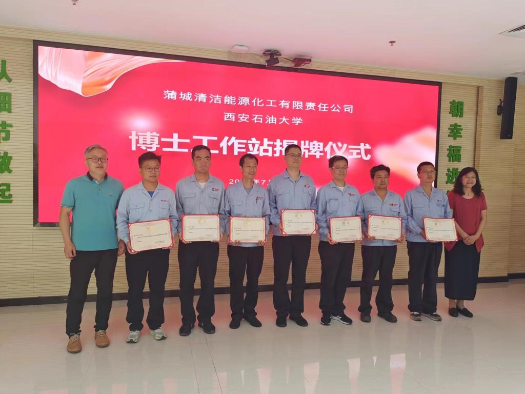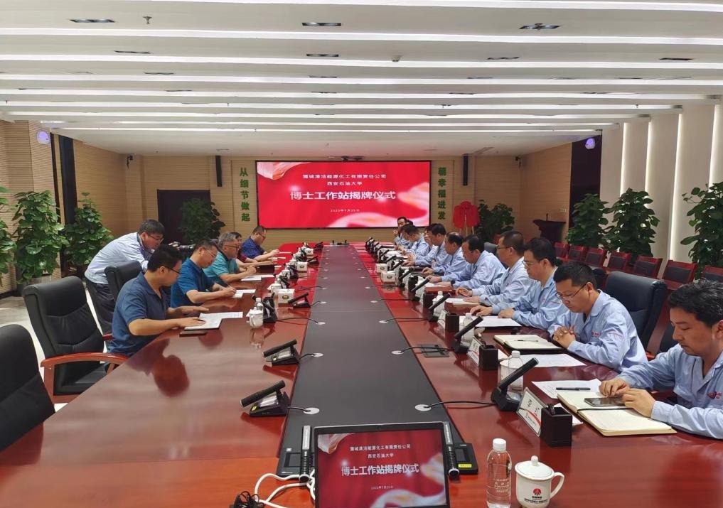 7月25日上午,蒲城清潔能源化工有限責任公司與西安石油大學“博士工作站”揭牌儀式在公司行政樓二樓東會議室舉辦,公司黨委書記、董事長田玉民,總經理封建利,副總經理謝博濤,技術工程部副部長趙勇,人力資源部部長司文彬以及受聘為我校校外兼職導師的公司技術骨干參會出席揭牌儀式,我?;瘜W化工學院黨委書記司馬文龍,院長王文珍以及化學工程系教師代表受邀參加。儀式由公司副總經理謝博濤主持。