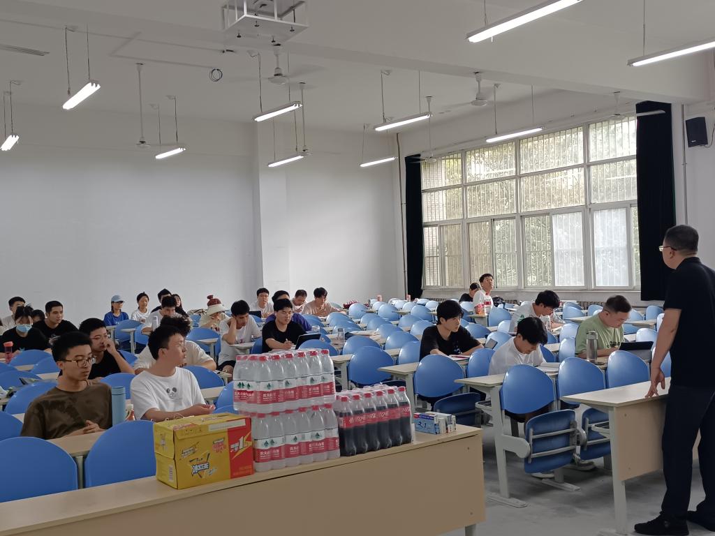 陳濤一行來到學院集中備考教室博思樓B101,送上了學院為同學們購買的學習用品、飲用水和飲料。陳書記與同學們進行了交流,他詢問了同學們暑期留校學習和生活情況,對同學們不畏酷暑堅定追求、立志成才的精神給予充分地肯定和贊許。他希望同學們要科學備考、科學學習,堅持復習、用心復習,要做到勞逸結合,學會自我調節,有任何有關問題和困難都可以向學院反映。學工辦主任李化杰提醒同學們在校期間要提高安全意識,保護好自己人身和財產安全。