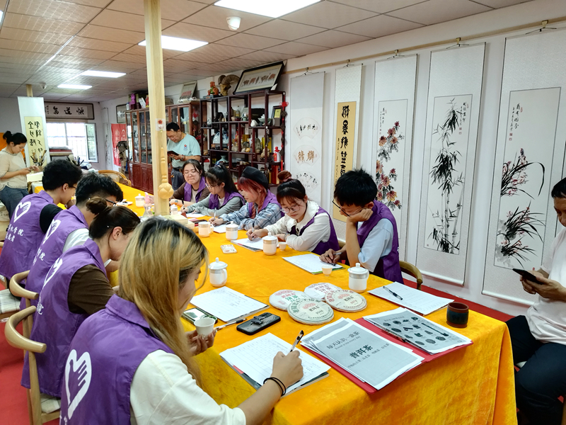 “一壺清茶伴一方字”,7月6日實踐團前往新市區木材廠厚沙茶藝店,體驗學習中華傳統文化中的茶和書法。