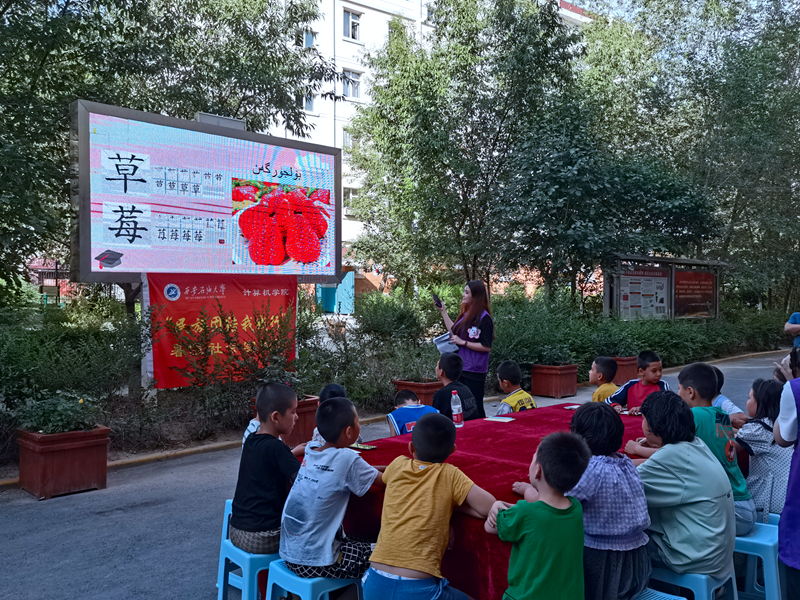 孩子們興奮的回答問題,主動參與游戲,認真觀看教學PPT,鄭重的寫下每一個漢字。在他們稚嫩的臉展示出的不僅是他們愉悅的心情更是團隊對于此次活動的精心準備,以及社區干部對于此次活動的全力支持。在學習普通話的游戲中,孩子們在隊員的鼓勵下從一開始的羞澀到有力大聲的回答出正確答案,“我獲得了許多寶貴的經驗和體會。我認識到普通話對他們的重要性,同時也深刻體會到了自己的責任和使命。”不只是社區的孩子們有了收獲,團隊的隊員同樣也有所感悟。