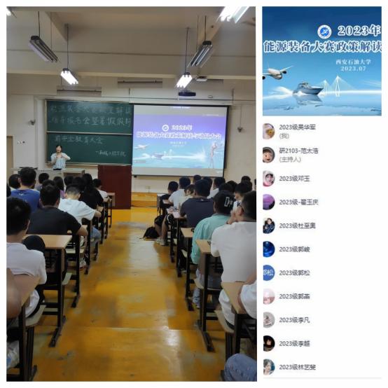 2023年7月3日下午,機械工程學院在雁塔校區東階302教室召開2023年研究生能源裝備創新設計大賽政策解讀動員會暨暑假假期安全教育大會。學院副院長崔璐、專業教師鄭杰、研究生輔導員歐紅娟和2021級、2022級和2023級研究生線上線下共計300余人參加會議。