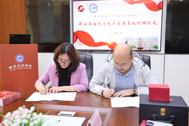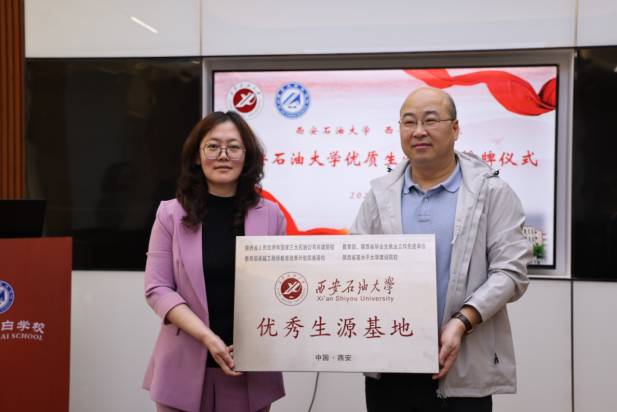 會上,田虹霞代表學校與西安太白學校簽署了《西安石油大學優秀生源基地建設協議》,并授予“優秀生源基地”牌匾。