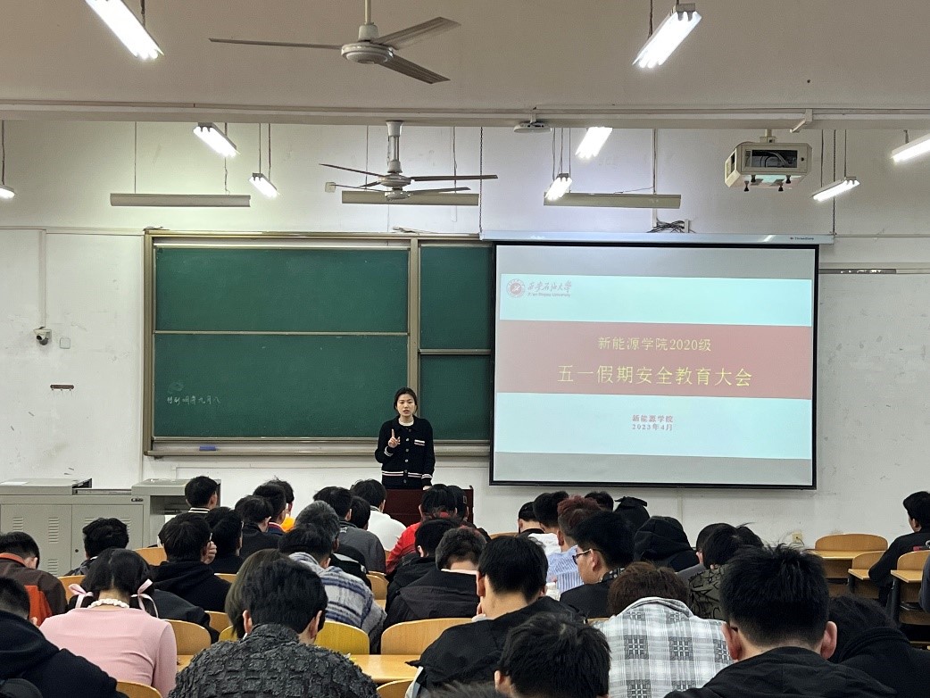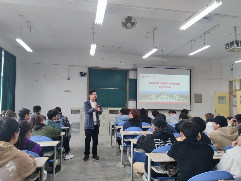 五一假期將至,為強化假期安全教育,提高學生自我防護意識,確保學生度過一個安全、快樂、充實的假期,4月24日-26日,新能源學院各年級扎實開展五一勞動節學生安全教育主題大會,會議由各年級輔導員老師主持,學院全體學生參會。