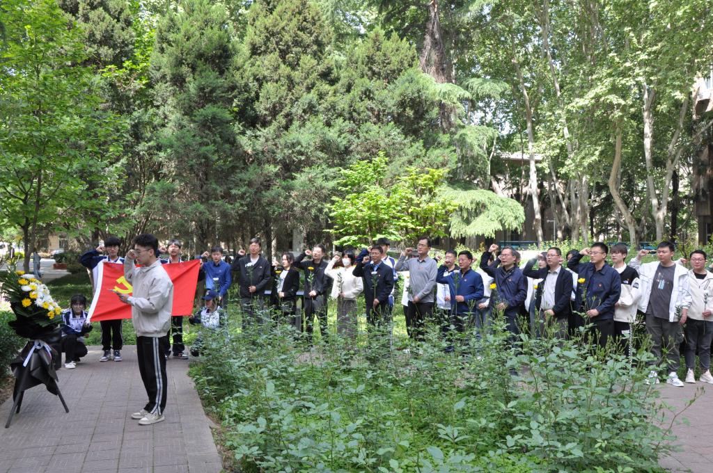 活動最后,學生黨員代表王彤帶領全體師生進行“春雨”精神宣誓。全體師生向唐春雨烈士雕像默哀一分鐘并依次敬獻鮮花。