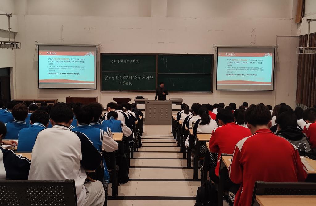 2023年4月17日晚上19點,地球科學與工程學院第二十期入黨積極分子培訓班開學典禮在鄠邑校區天工樓115教室順利召開。開學典禮由勘探2201班王昊同學主持,地球科學與工程學院黨委書記馬行天老師、地球科學與工程學院2019級輔導員劉學斌老師及第二十期全體入黨積極分子參加。