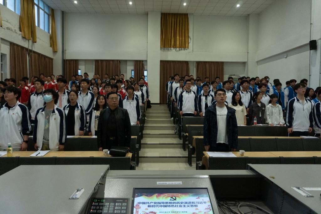 在開學典禮結束之后,馬行天老師為同學們講授了第一課,主題為“中國共產黨指導思想的歷史演進和習近平新時代中國特色社會主義思想”。他從什么是黨的指導思想、中國共產黨指導思想的演變過程,以及習近平新時代中國特色社會主義思想等三個方面進行了授課,生動形象的向我們講解了中國共產黨指導思想的具體演化過程并且在每個重點時期的思想都進行了著重的解釋,環環相扣,邏輯緊密,在互動環節,氣氛活躍,同學反映熱烈,課堂效果顯著。