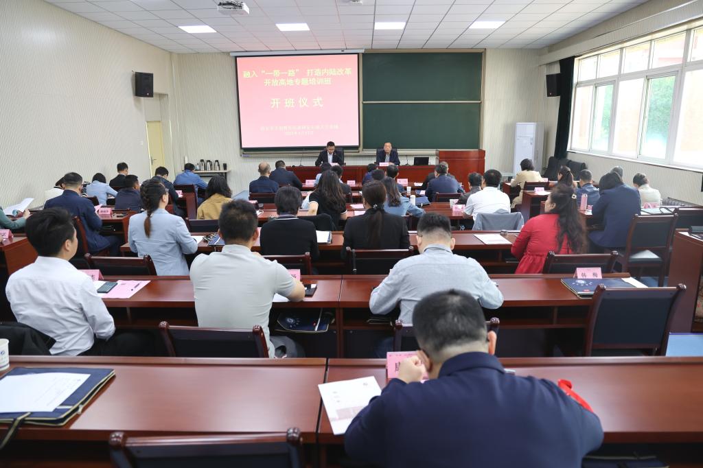 開班儀式上,談建勤簡要介紹了我校發展簡況和干部教育培訓工作開展情況。他強調,融入“一帶一路”, 打造內陸改革開放高地,大家重任在肩、使命光榮。希望通過此次培訓不斷強內功、提能力,躬身入局、苦干實干,以主人翁的精神和奮斗者的姿態積極投身西安市“一帶一路”建設,共同為西安的高質量發展貢獻力量。