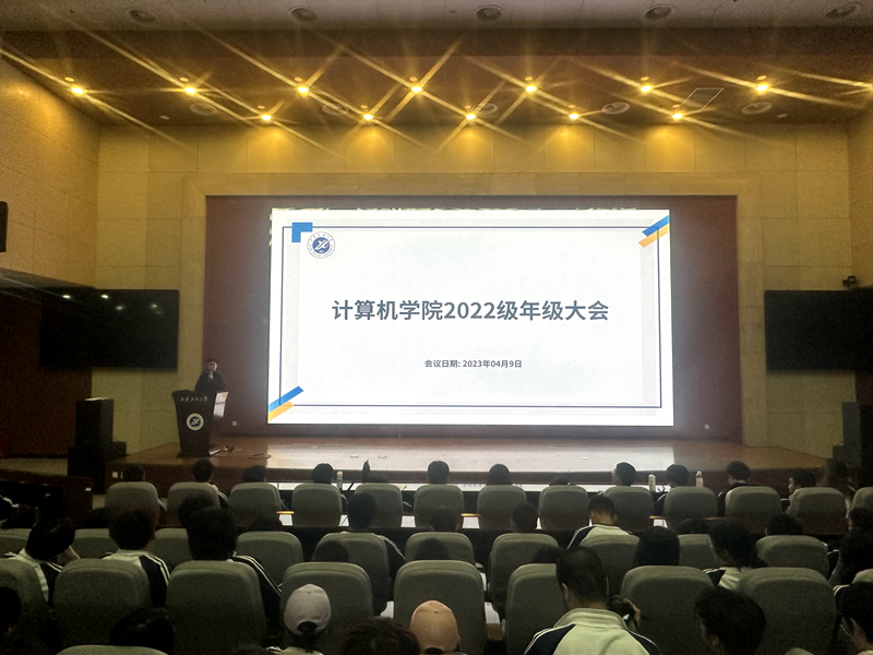 4月9日晚,計算機學院在鄠邑校區弘石報告廳召開2022級年級大會。2022級輔導員李晨、姚謙及2022級全體學生參加。