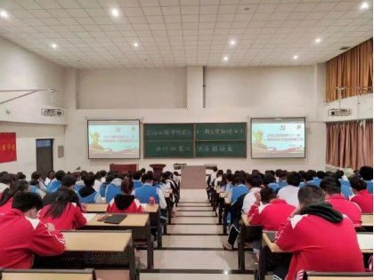 趙紀飛以“嚴格發展黨員工作程序,全面提升發展黨員質量”為主題,首先從黃文秀、吳毓鳴、錢三強等時代楷模的例子引入,教育引導學生要端正入黨動機,堅定理想信念,心系群眾、服務人民。新時代的青年要以實現中華民族的偉大復興為己任,增強做中國人的志氣、骨氣、底氣,不負時代,不負韶華,不負黨和人民的殷切寄托!然后,趙紀飛從申請入黨、入黨積極分子的確定和培養、發展對象的確定和考察、預備黨員的接收、預備黨員的教育、考察和轉正五個方面25個工作步驟詳細介紹了發展黨員的工作流程和要求。最后,趙紀飛指出只有嚴格的入黨流程才能保證黨員的質量,黨是莊嚴與神圣的,必須按照一定的標準進行選拔,保證黨員的質量,切切實實落到實處。同時希望大家能夠端正入黨動機,明確黨員條件,嚴格履行黨章規定的入黨流程,按照黨員標準嚴格要求自己,爭取早日成為一名合格黨員。
