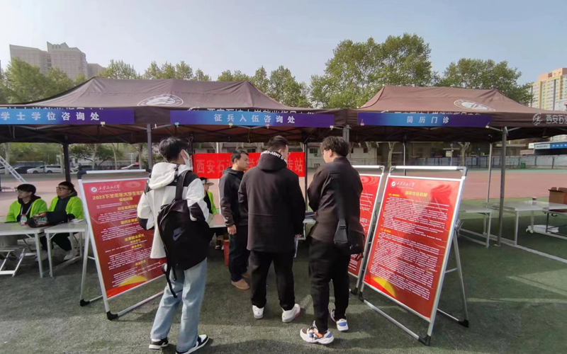 為扎實做好我校2023年下半年征兵宣傳工作,積極引導和鼓勵畢業學生響應國家號召,投身軍營,建功立業。4月7日,學校征兵工作站以“2023年春季校園招聘會”為契機,積極開展征兵宣傳咨詢活動,引導廣大畢業生積極報名參軍,營造“參軍入伍就是高質量就業”的濃厚氛圍。