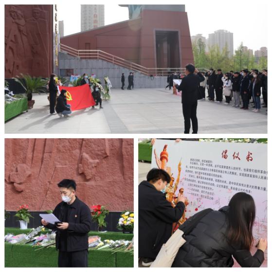 青山有幸埋忠骨,山河無恙慰英魂。革命烈士紀念浮雕前,菊花朵朵怒放,氣氛莊嚴肅穆。在校研究生會代表孫一昊同學的主持下,大家面向紀念浮雕靜默肅立,向革命烈士們默哀致敬,追憶為國捐軀的革命烈士,表達對先烈們的沉痛哀悼和思念。飲水思源,不忘來路,在場黨員代表面向鮮紅的黨旗重溫入黨誓詞,用鏗鏘誓言向英烈們莊嚴承諾為黨的事業奮斗終生的決心。馬克思主義學院李澤宇同學代表全體研究生進行表態發言,表達了青年一代要將革命先烈們英勇無畏及無私奉獻的精神深植于心、外化于行的堅定信念。