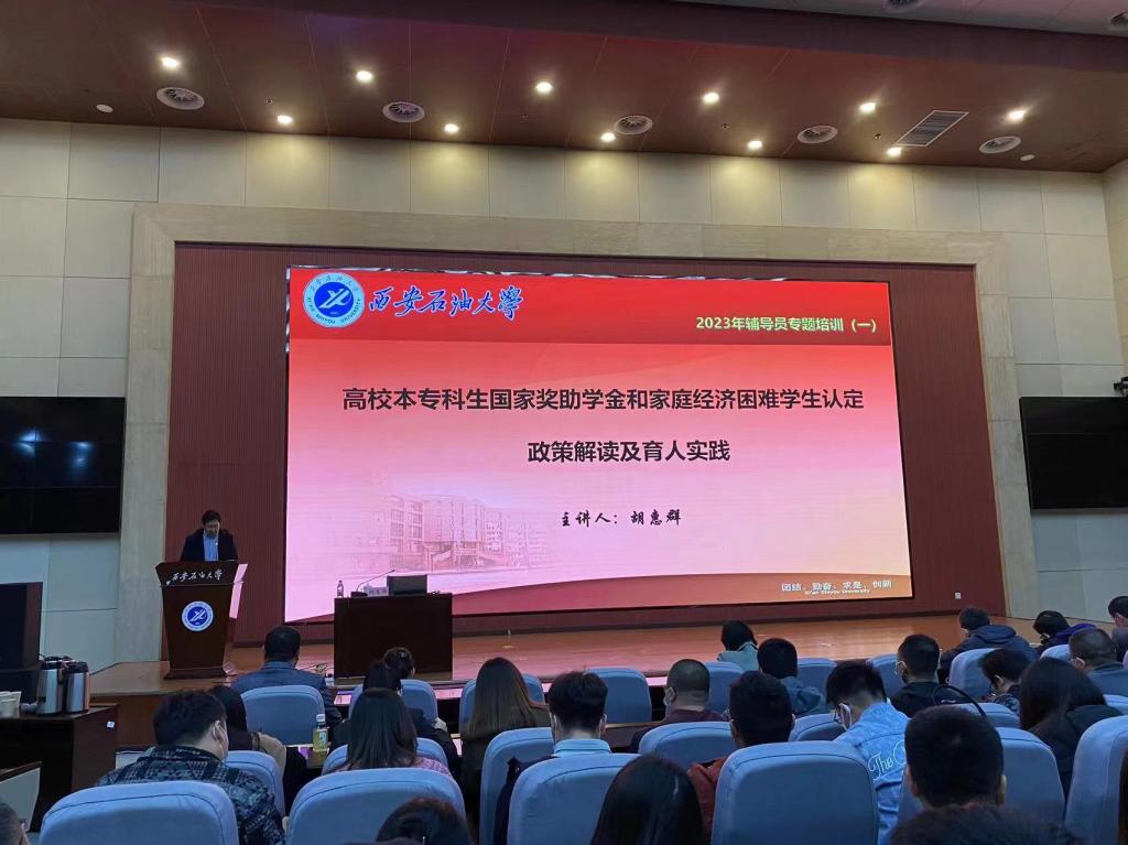 4月6日下午,我校2023年輔導員專題培訓第一講在鄠邑校區弘石報告廳舉行。陜西省教育廳資助管理中心胡惠群副主任以“高校本專科生國家獎助學金和家庭經濟困難學生認定”的政策解讀與育人實踐為主題作專題報告。會議由學生處處長王亮主持,學生資助中心、校團委、各院系主管學生工作負責人和全體輔導員參加。