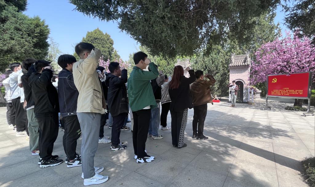 活動開始,全體人員向革命先烈默哀,隨后依次向紀念碑鞠躬獻花,寄托哀思,感受革命先烈忠誠于黨的堅定信念和視死如歸的革命精神,表達對英烈們的敬仰之情。研究生第二黨支部書記杜森同志介紹了西安烈士陵園的歷史,號召大家不忘初心、牢記使命,追憶革命先烈,肩負青年使命擔當,并帶領黨員同志在黨旗前莊嚴宣誓,重溫入黨誓詞。