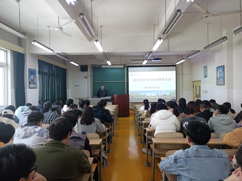 為進一步增強學生校園安全意識,把各種安全隱患消滅在萌芽狀態,給學生營造一個良好的學習生活環境,3月27日至3月28日期間,理學院各年級相繼召開安全教育大會,全體研究生、本科生參加。