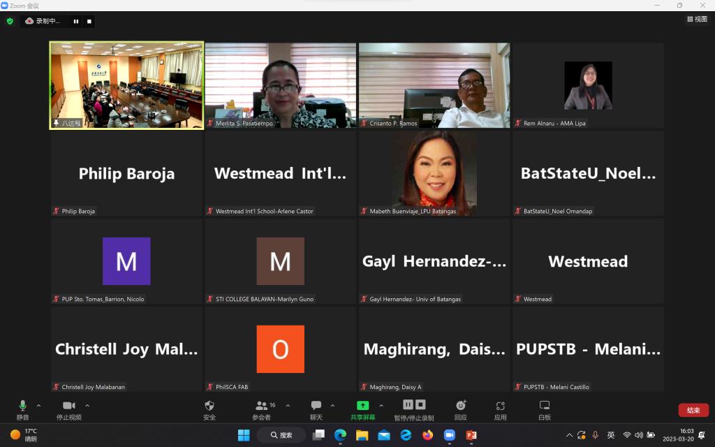 會上,與會代表就菲方學生來華留學、教師互訪、學生交流等內容進行了深入溝通。通過本次線上+線下座談,高效鏈接了我校與菲律賓政府部門、高等學校間的聯絡,進一步擴大了我校與菲律賓高校合作,為我校拓展與菲律賓教育合作搭建了橋梁,奠定了合作基礎。