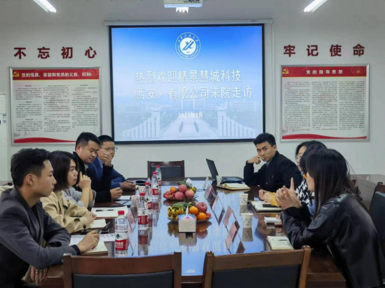 王瑩副書記首先對精景慧城(西安)科技有限公司蒞臨學院洽談合作表示熱烈歡迎,并介紹了學院的學生概況、專業分布、社會實踐等情況。隨后劉群總經理介紹了公司的主營范圍、產品優勢及發展規劃,并表示歡迎學生在校期間來公司開展社會實踐活動。雙方就共建社會實踐基地、實習實訓基地及畢業生就業實習等方面進行深度洽談。