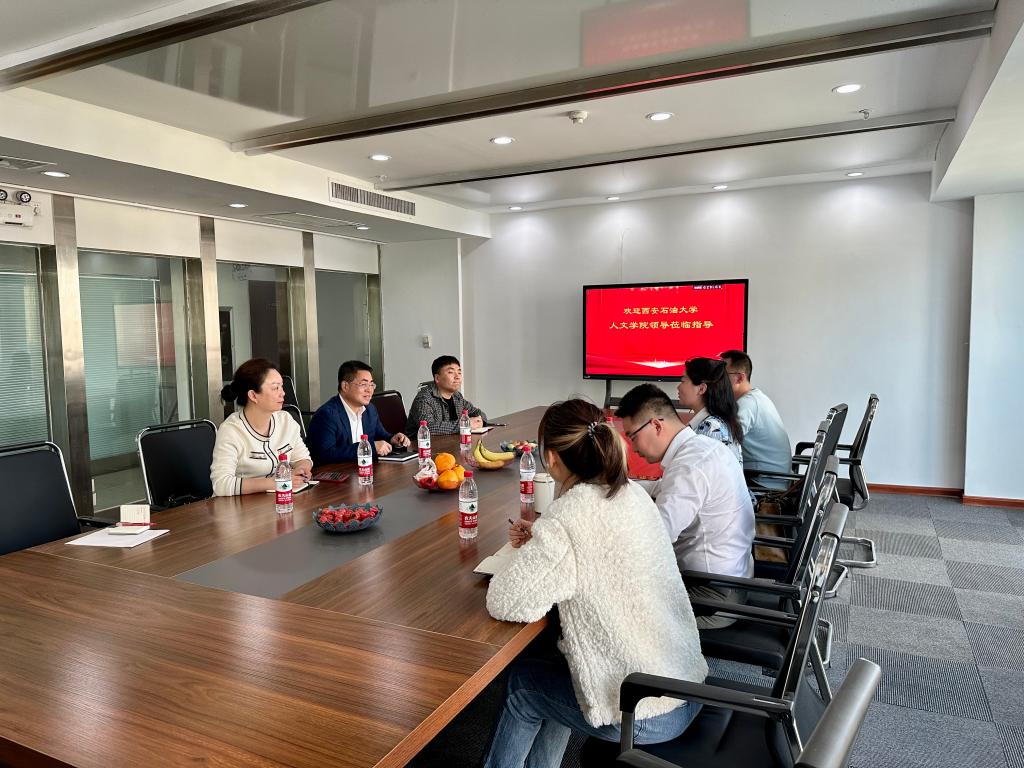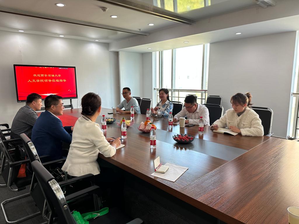 余小勇書記首先感謝中心的熱情接待,隨后他介紹了人文學院學科建設與人才培養等基本情況,提出加強與西安本地優秀企業的合作,深化校企協同育人,實現互利共贏。雙方就建立聯合培養基地、探索校企合作模式、提升人才培養質量等方面深入交流,并達成初步共識。