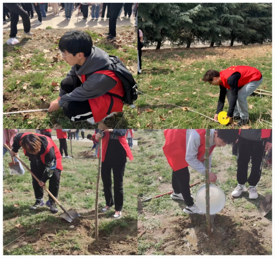 此次活動栽種的金葉復葉槭樹苗由后勤處統一提供,栽種區域為我校鄠邑校區環道東側區域?;顒舆^程中,志愿者在后勤處工作人員的指導下,身穿志愿紅馬甲,精心完成從放樹、剪枝、填土、踩實到澆水的每一個步驟,相互分工合作、配合默契,整個植樹活動現場一片熱火朝天的勞動景象。
